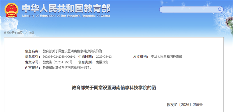 近日,教育部发布《关于同意设置河南信息科技学院的函》。经教育部党组会议研究决定,同意以河南理工大学鹤壁工程技术学院为基础,设立河南信息科技学院。河南信息科技学院为公办普通本科学校,由河南省领导和管理。