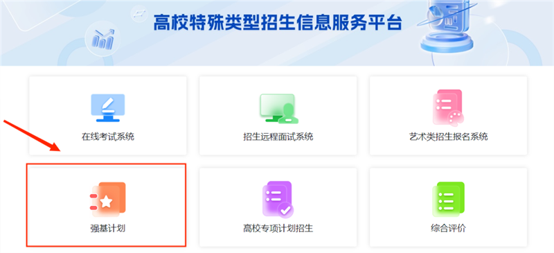 在高校特殊类招生信息服务平台选择强基计划这个位置,进入下一个界面。