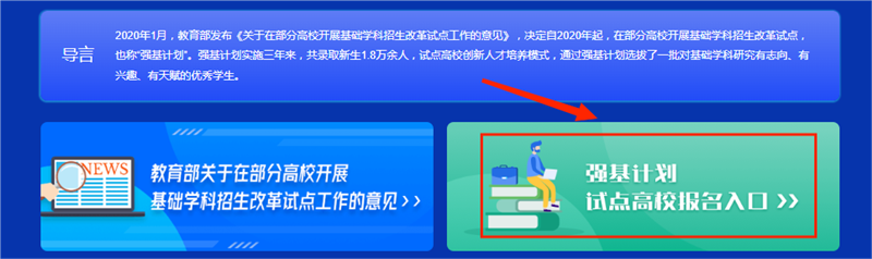 在强基计划报考指南中选择强基计划试点高校报名入口。