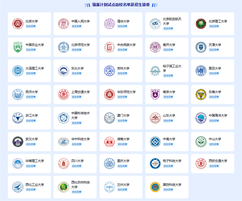 2026年“强基计划”网上报名已陆续开始。在疆招收强基计划试点高校已发布招生简章,请仔细查看招生简章后,在规定时间内完成报名。